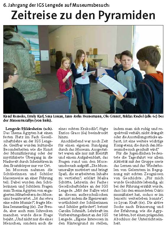 PN: "IGS Lengede auf Zeitreise zu den Pyramiden"