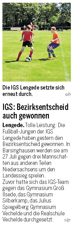 PAZ: "Fußballmannschaft der IGS Lengede fährt zum Bezirksentscheid"