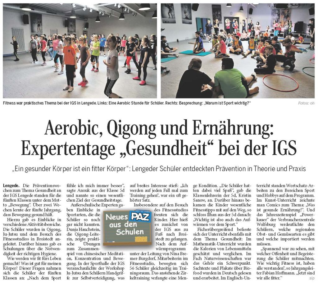 PAZ: "Aerobic, Qigong und Ernährung: Expertentage „Gesundheit“ bei der IGS"