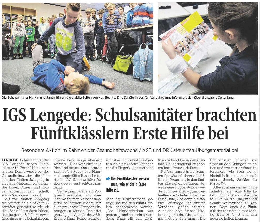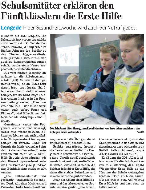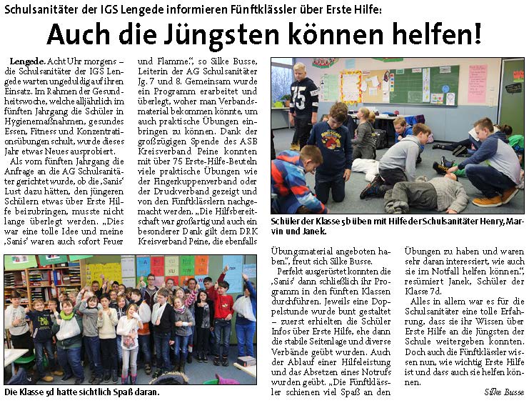 PAZ: "IGS Lengede: Schulsanitäter brachten Fünftklässlern Erste Hilfe bei"