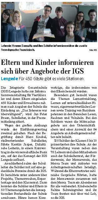 PN: "Eltern und Kinder informieren sich über Angebote der IGS"