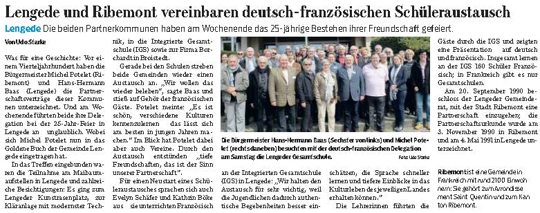PN: "Lengede und Ribemont vereinbaren deutsch-französischen Schüleraustausch"