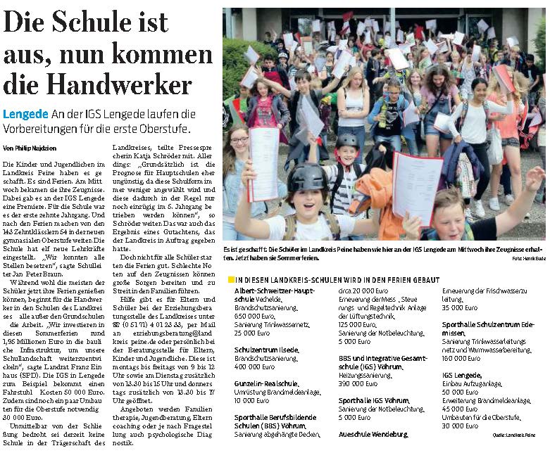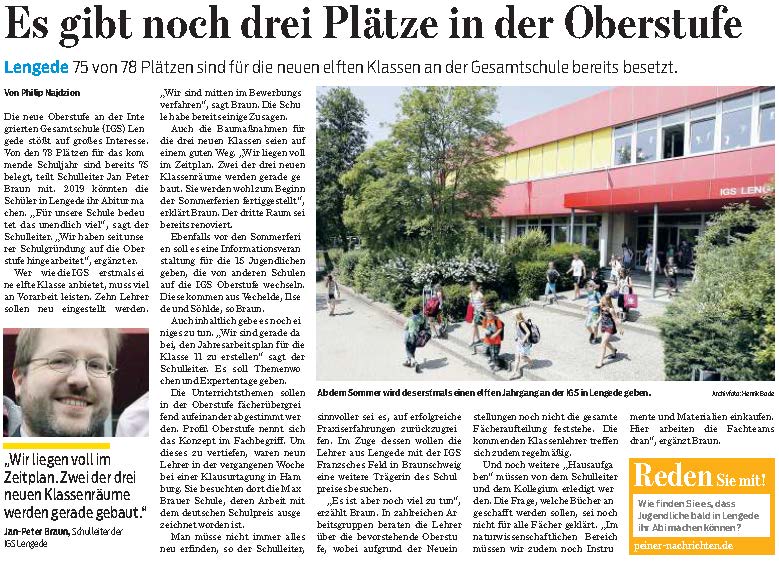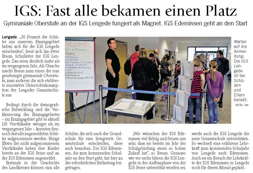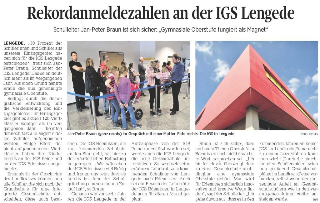 PAZ: "Rekordanmeldezahlen an der IGS Lengede"