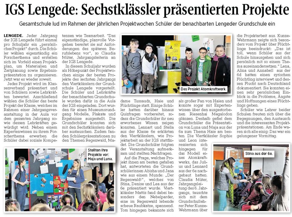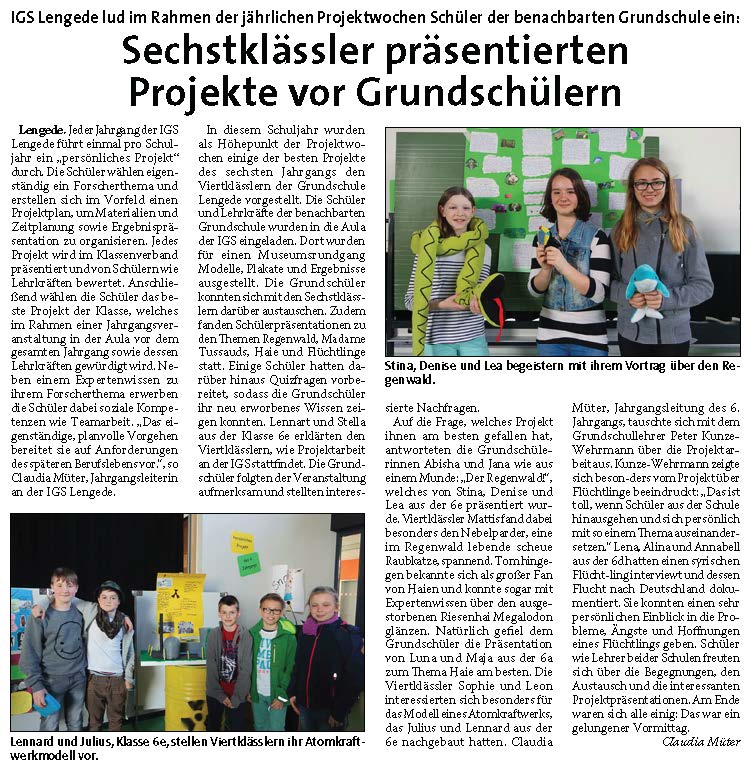PAZ: "IGS Lengede: Sechstklässler präsentierten Projekte"