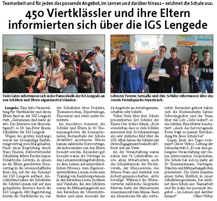 PAZ: "450 Schüler und Eltern informierten sich über die IGS Lengede"