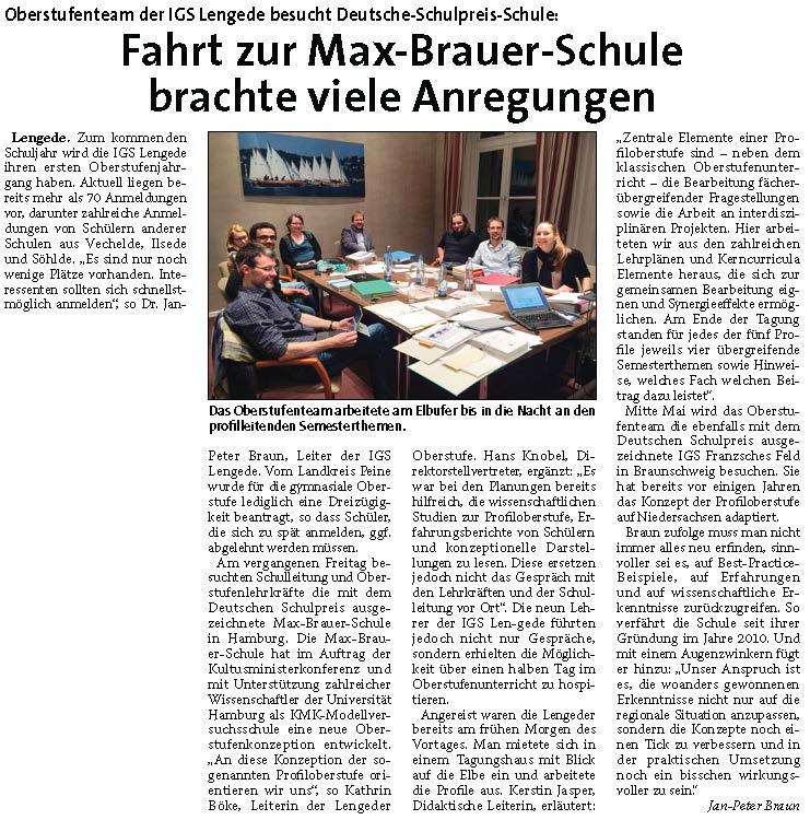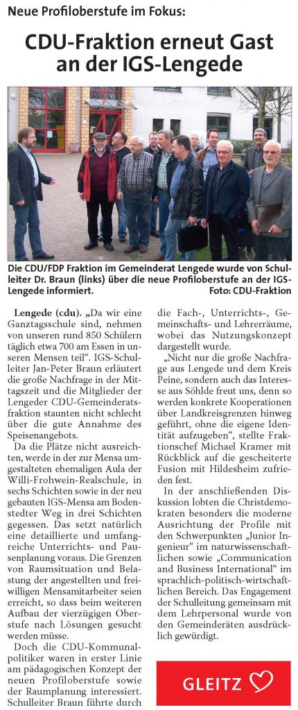 PAZ: "Lengeder CDU/FDP-Ratsfraktion informierte sich über IGS"