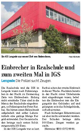 PN: "Einbrecher in Realschule und zum zweiten Mal in IGS"