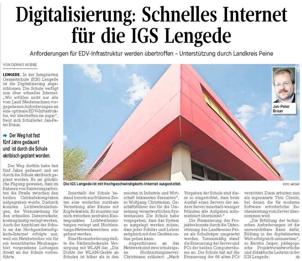 PAZ: "Digitalisierung: Schnelles Internet für die IGS Lengede"