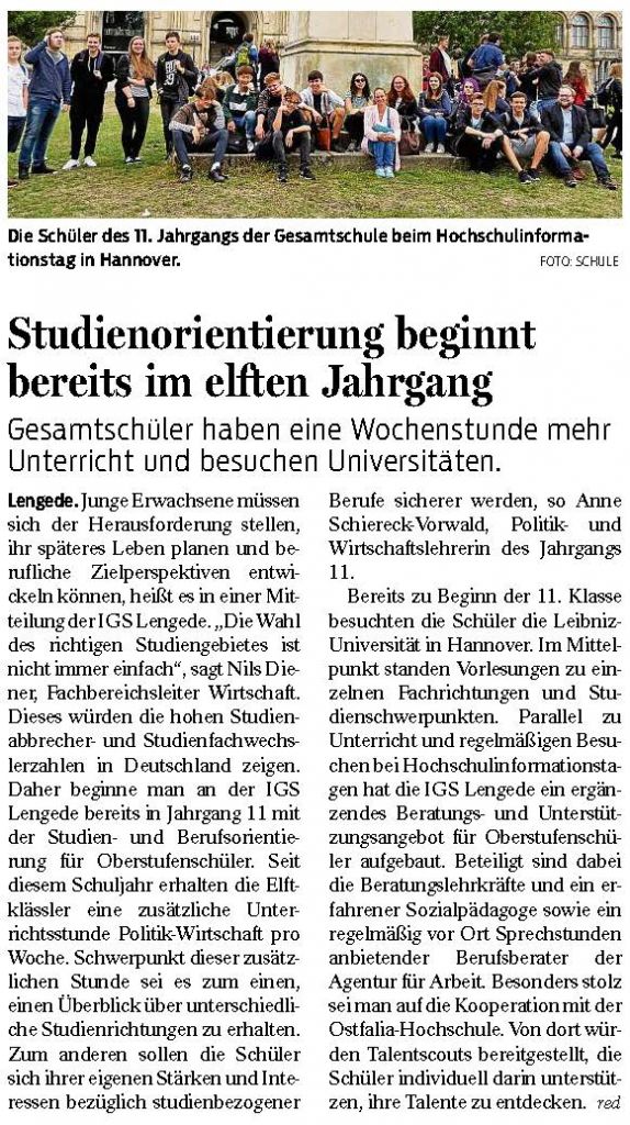 PN: "Studien- und Berufsmesse öffnet Lengeder IGS-Schülern die Türen"