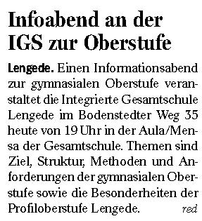 PAZ: "IGS Lengede: Heute Info-Veranstaltung"