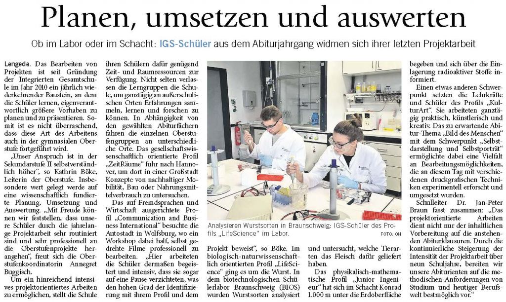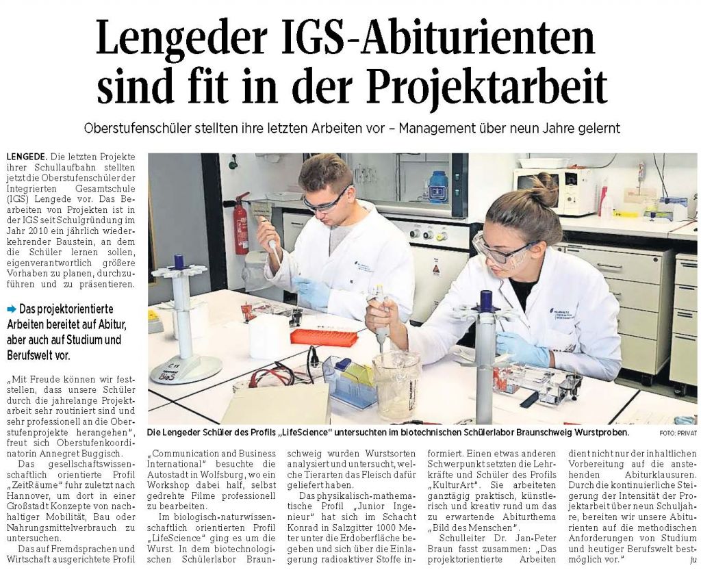 PAZ: "Lengeder IGS-Abiturienten sind fit in der Projektarbeit"