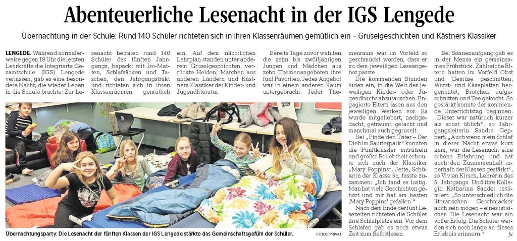 PAZ: "Abenteuerliche Lesenacht in der IGS Lengede"