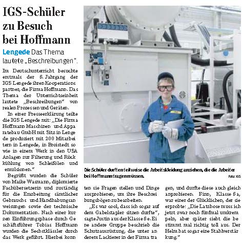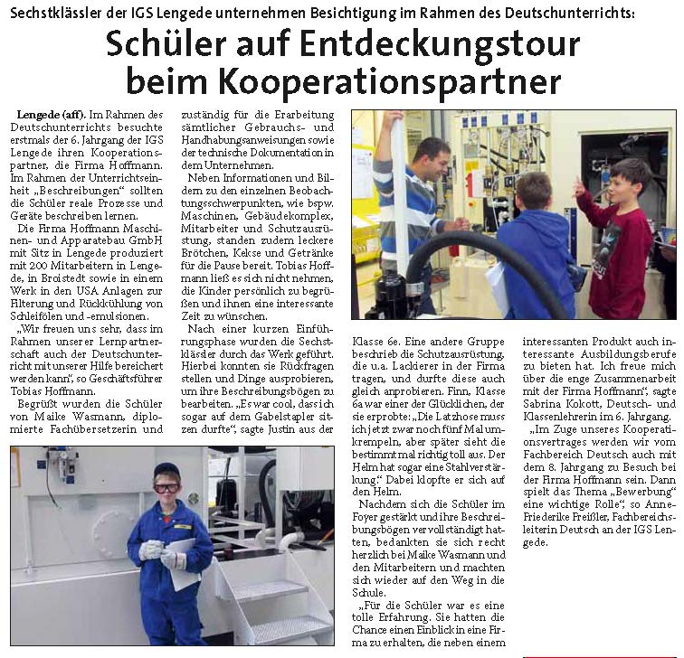 PAZ: "Sechstklässler der IGS Lengede zu Besuch bei der Firma Hoffmann"