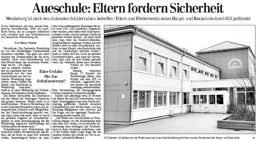 PAZ: "Aueschule: Eltern fordern Sicherheit"