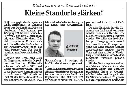 PAZ: "SPD und Grüne fordern kleine Gesamtschule"