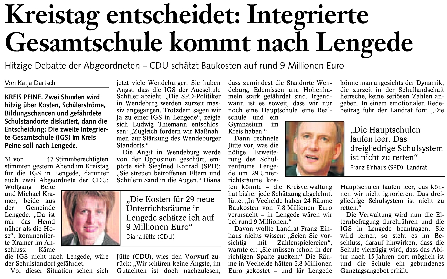 PN: "Kreistage entscheidet: Integrierte Gesamtschule kommt nach Lengede"