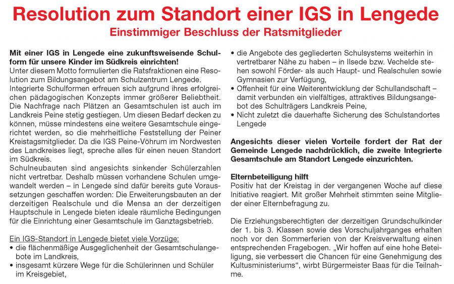 RSB: "Resolution zum Standort einer IGS in Lengede"