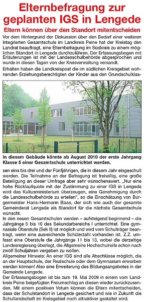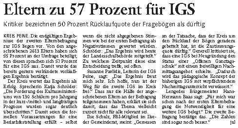 RSB: "Elternbefragung zur geplanten IGS in Lengede"