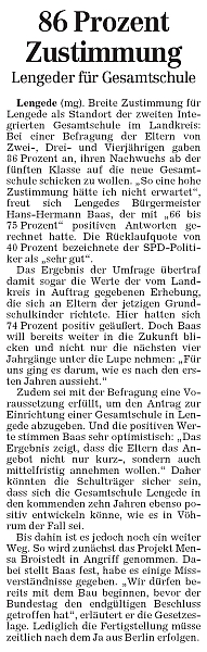 PAZ: "Gesamtschule: Gute Resonanz bei Befragung"