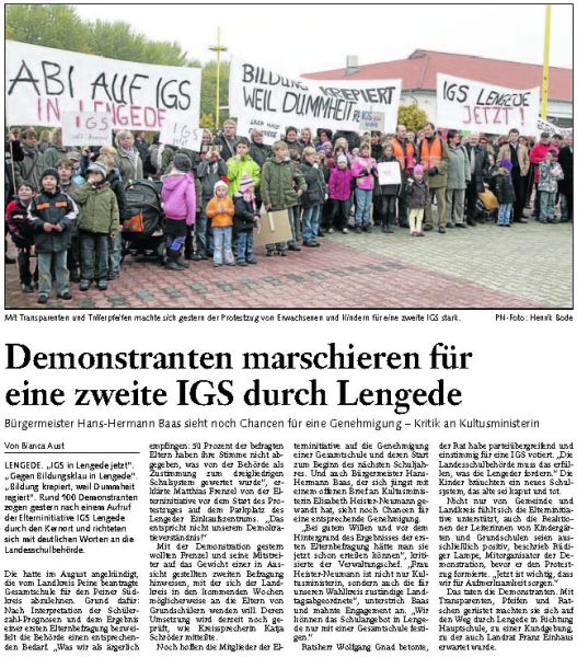 PN: "Demonstranten marschieren für eine zweite IGS durch Lengede"