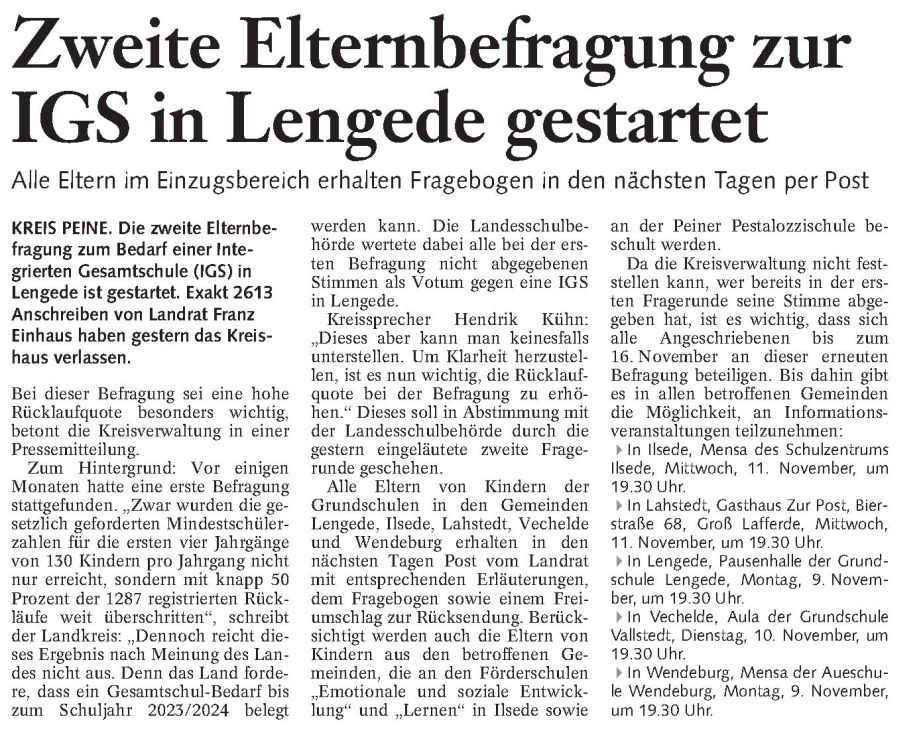 PN: "Zweite Elternbefragung zur IGS in Lengede gestartet"