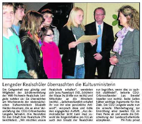 PN: "Lengeder Realschüler überraschten die Kultusministerin"