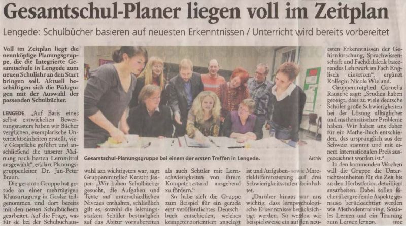 PAZ: "Voll im Zeitplan liegt die neunköpfige Planungsgruppe, die die Intergrierte Gesamtschule in Lengede zum neuen Schuljahr an den Start bringen soll."