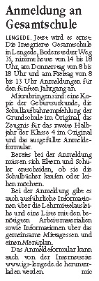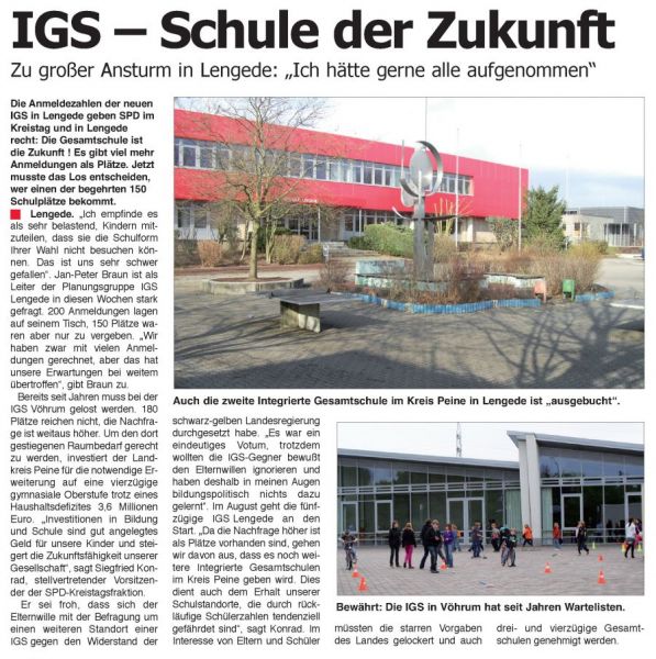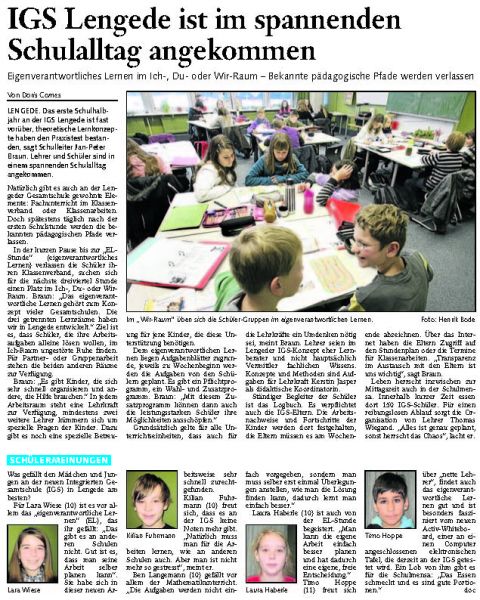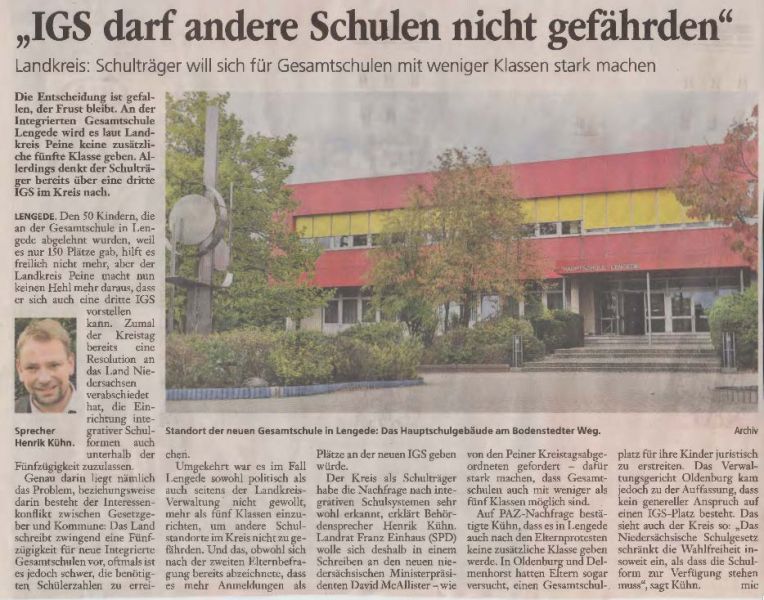 PAZ: "IGS Lengede geht in die erste Klasse"
