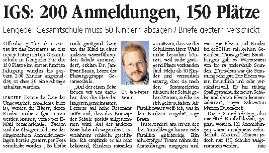PAZ: "IGS: 200 Anmeldungen, 150 Plätze"