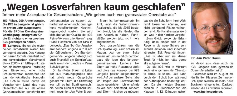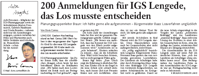 PN: "200 Anmeldungen für IGS Lengede, das Los muss entscheiden"