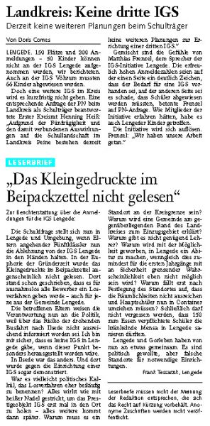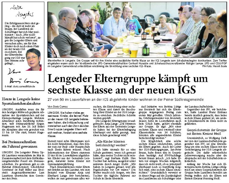PN: "Lengeder Elterngruppe kämpft um sechste Klasse an der neuen IGS"