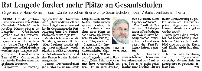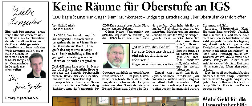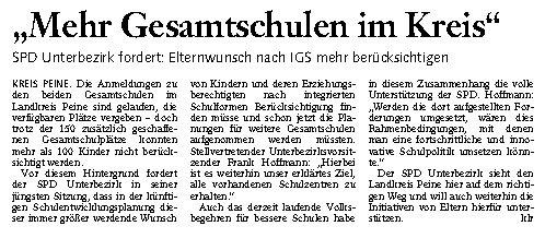 PAZ: "Rat Lengede fordert mehr Plätze an Gesamtschulen“