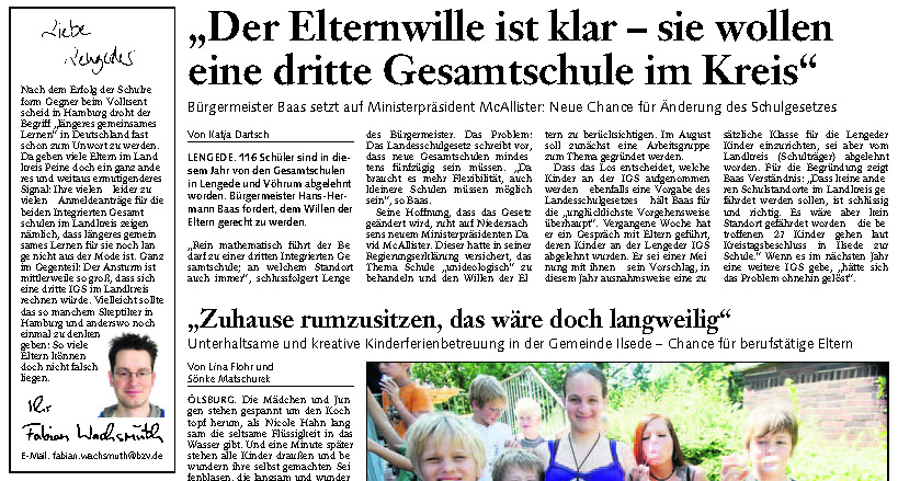 RSB: "Lengedes Bürgermeister zum Start der IGS in Lengede am 6. August"