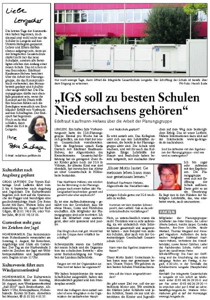 PAZ: "IGS Lengede startet mit großen Ambitionen"