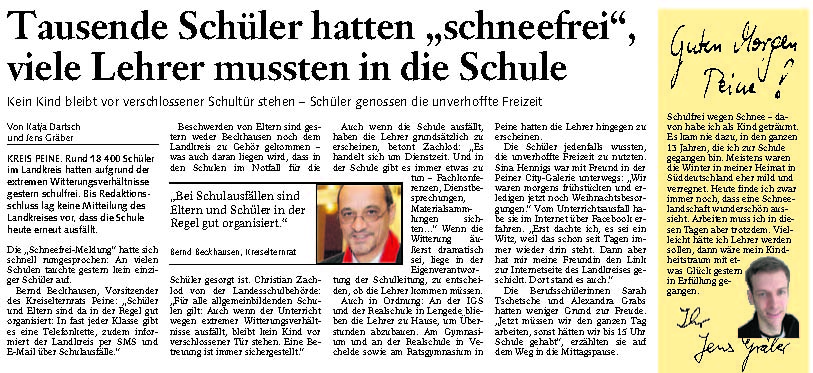 PN: "Tausende Schüler hatten 'schneefree', viele Lehrer mussten in die Schule"