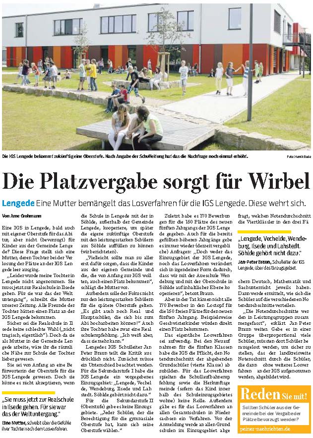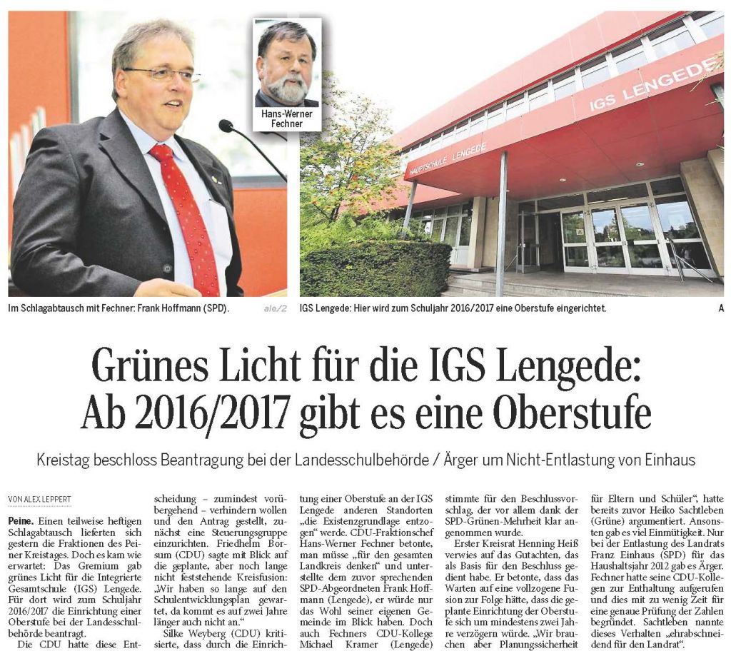 PAZ: "Grünes Licht für die IGS Lengede: Ab 2016/2017 gibt es eine Oberstufe"