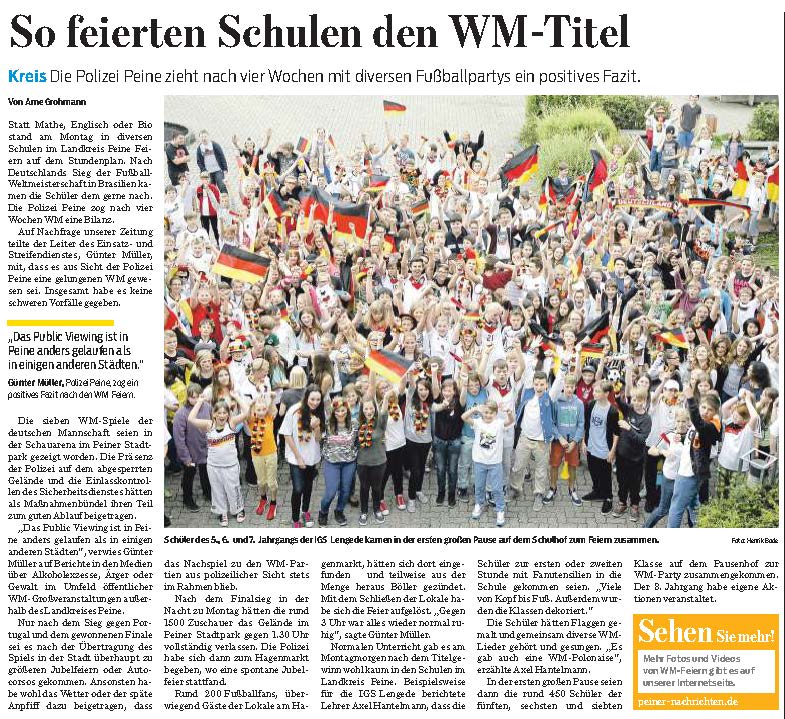 PN: "So feierten Schulen den WM-Titel"