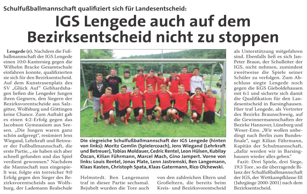 PN: "IGS Lengede ist Vize-Landesmeister"