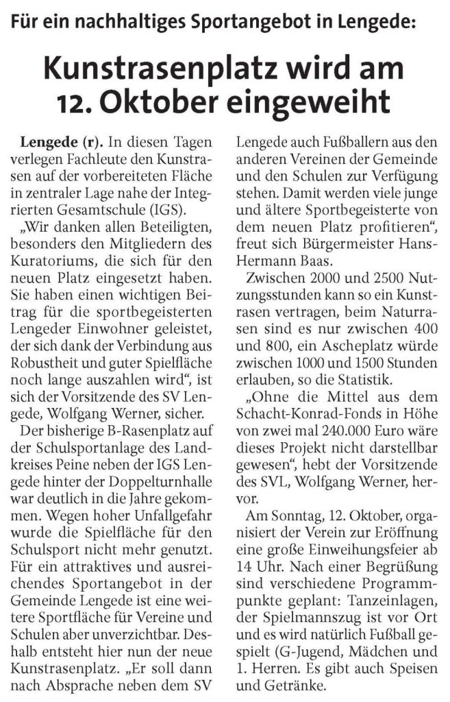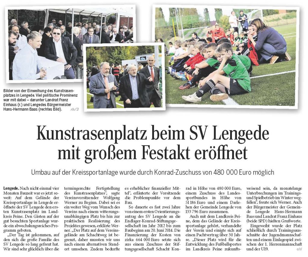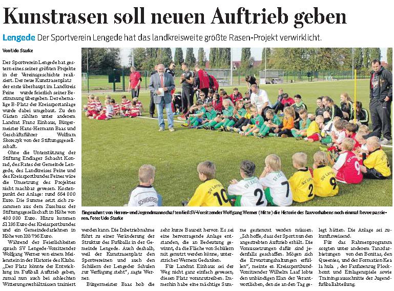 PAZ: "Kunstrasenplatz beim SV Lengede mit großem Festakt eröffnet"