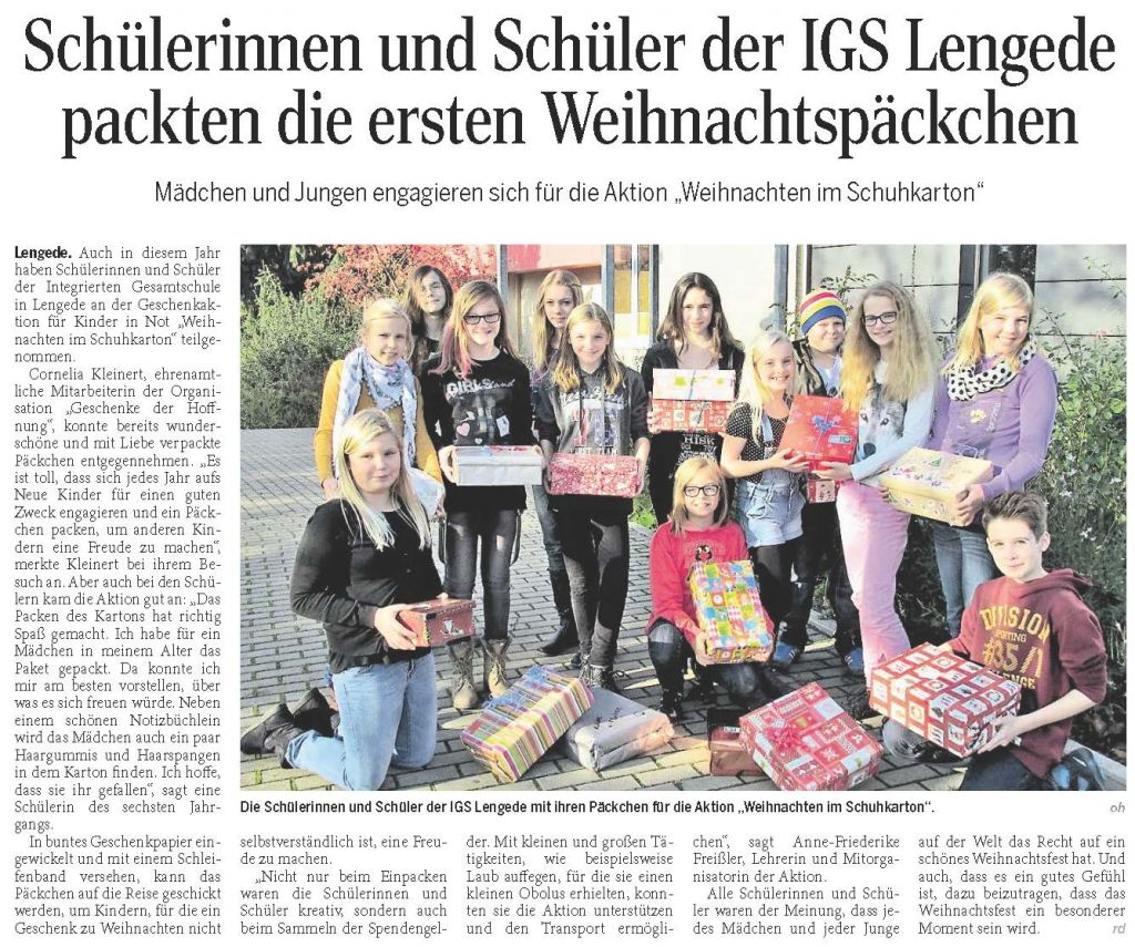 PAZ: "Schülerinnen und Schüler der IGS Lengede packten die ersten Weihnachtspäckchen"