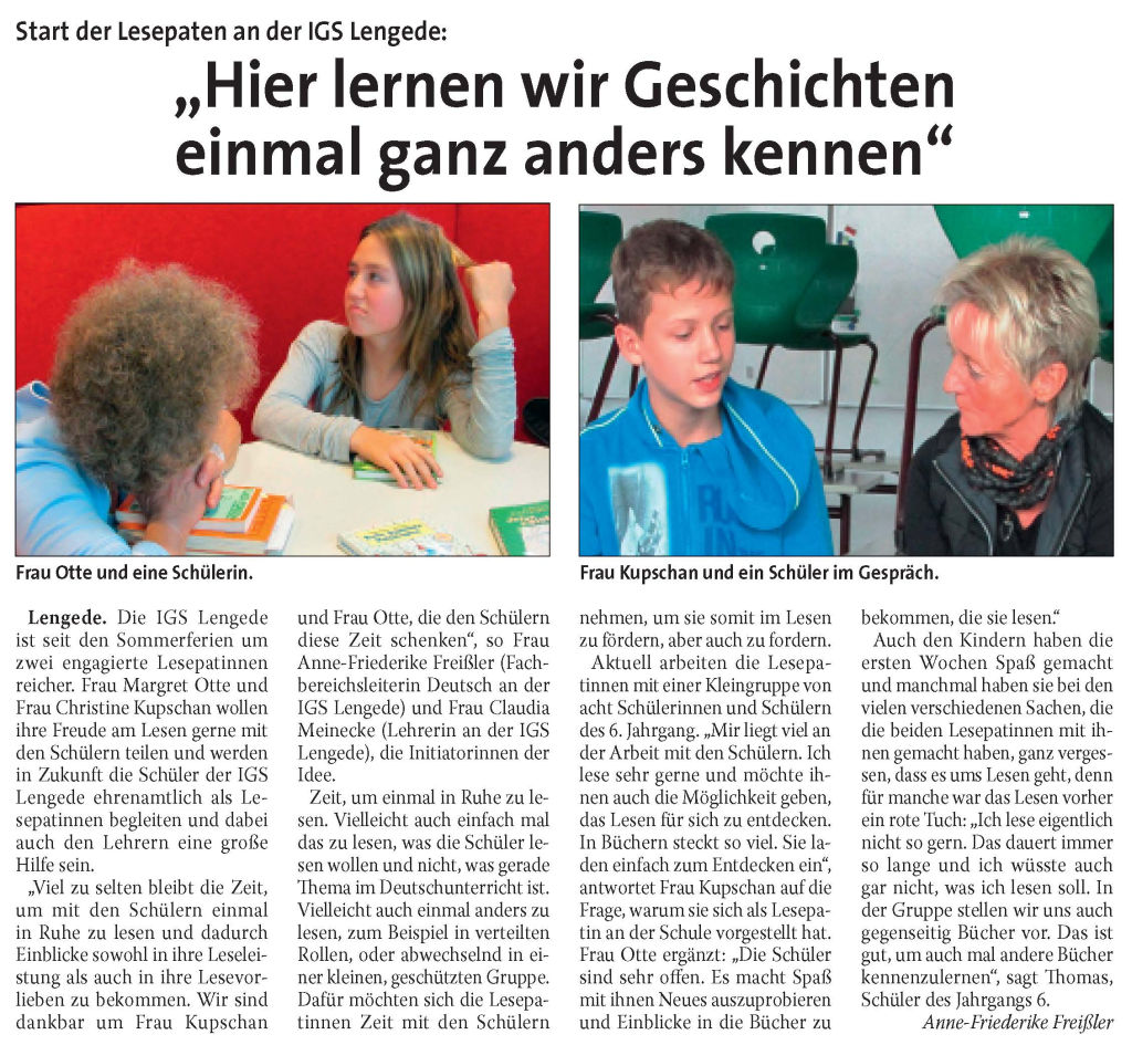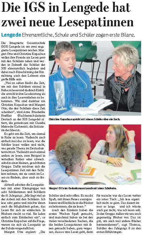 PN: "Die IGS in Lengede hat zwei neue Lesepatinnen"