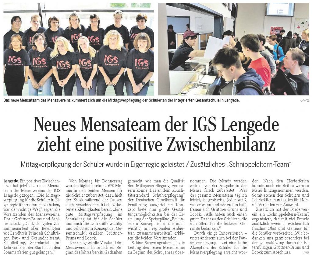 PAZ: "Neues Mensateam der IGS Lengede zieht eine positive Zwischenbilanz"