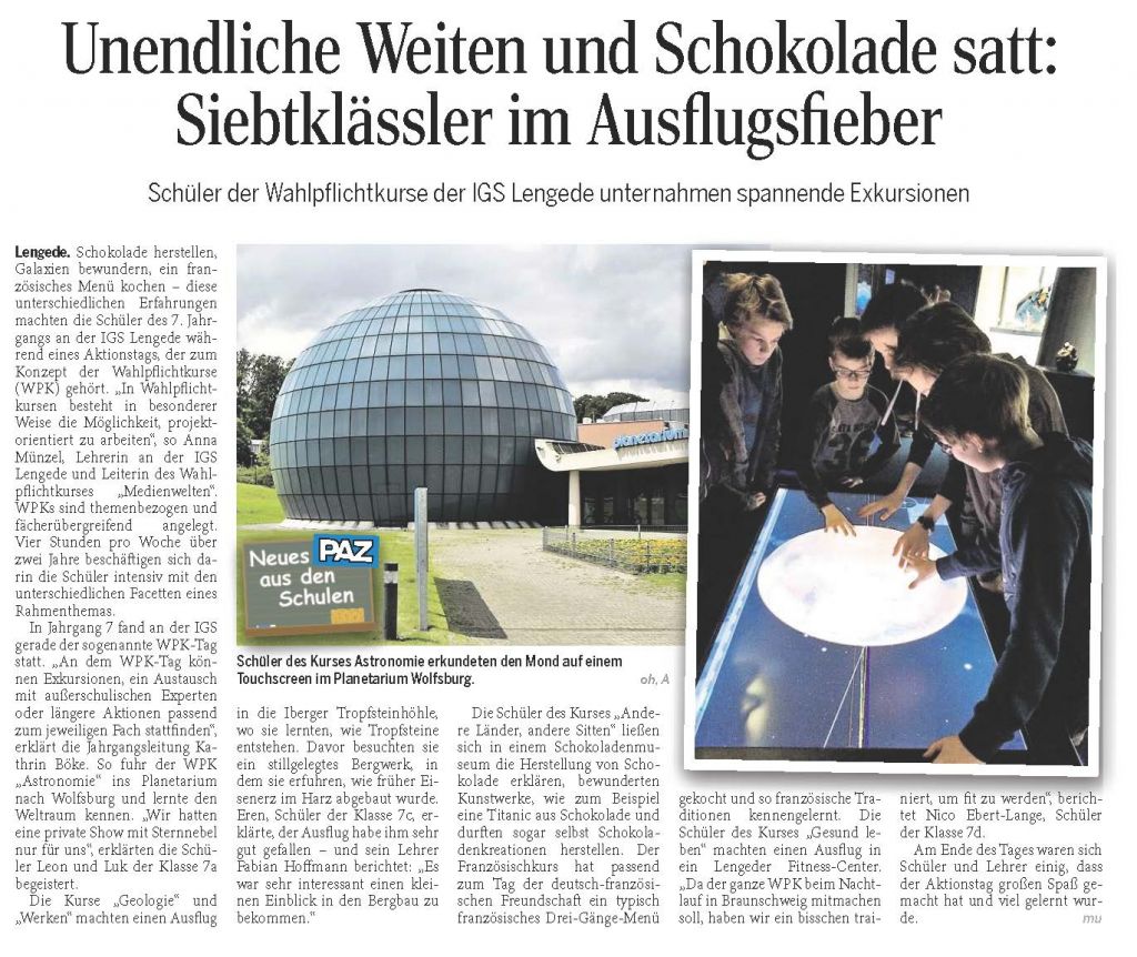 PAZ: "Unendliche Weiten und Schokolade satt: Siebtklässler im Ausflugsfieber"