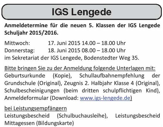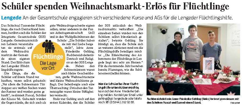 PN: "Lengedes IGS-Schüler setzen sich für die Flüchtlinge ein"
