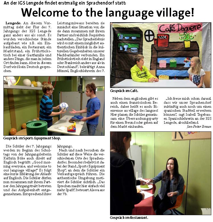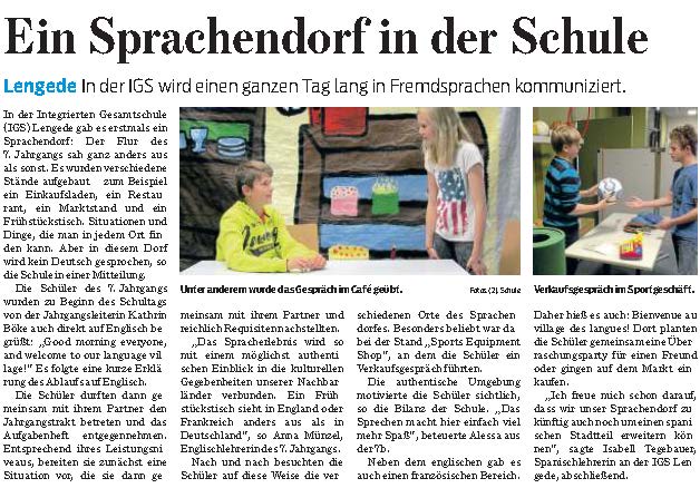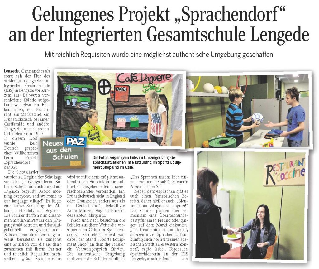 PAZ: "Gelungenes Projekt „Sprachendorf“ an der Integrierten Gesamtschule Lengede"