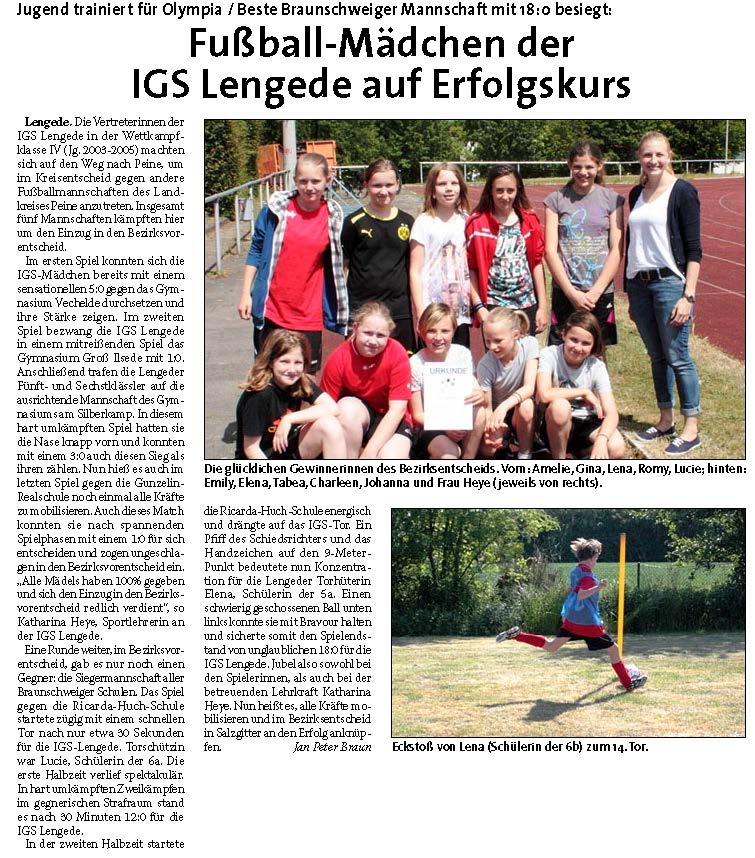 GAL: "Fußball-Mädchen der IGS Lengede auf Erfolgskurs"