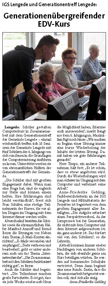 PAZ: "IGS-Schüler trainieren Senioren am PC"