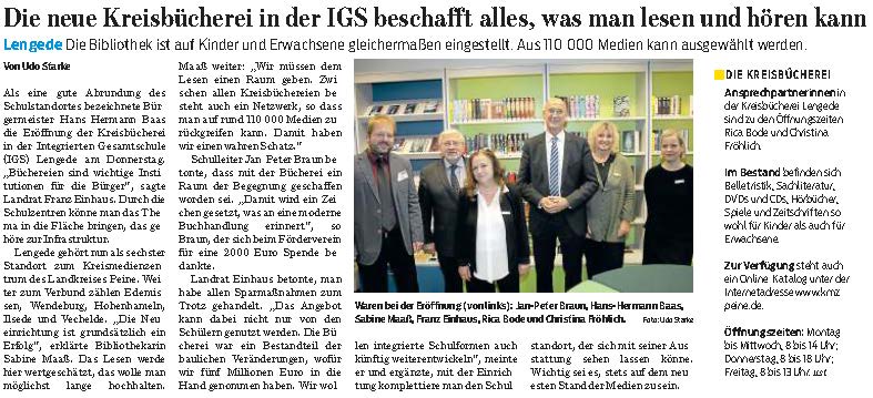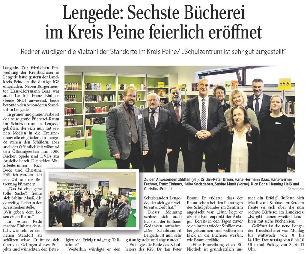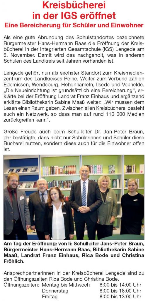 PAZ: "Lengede: Sechste Bücherei im Kreis Peine feierlich eröffnet"