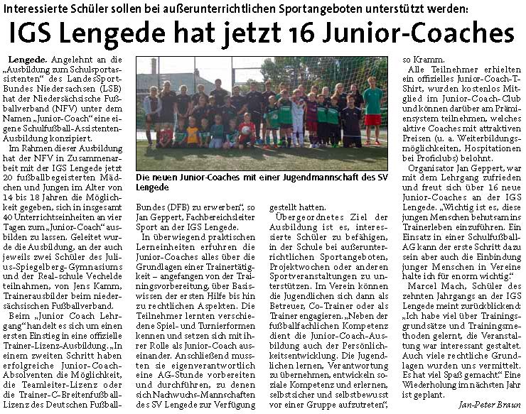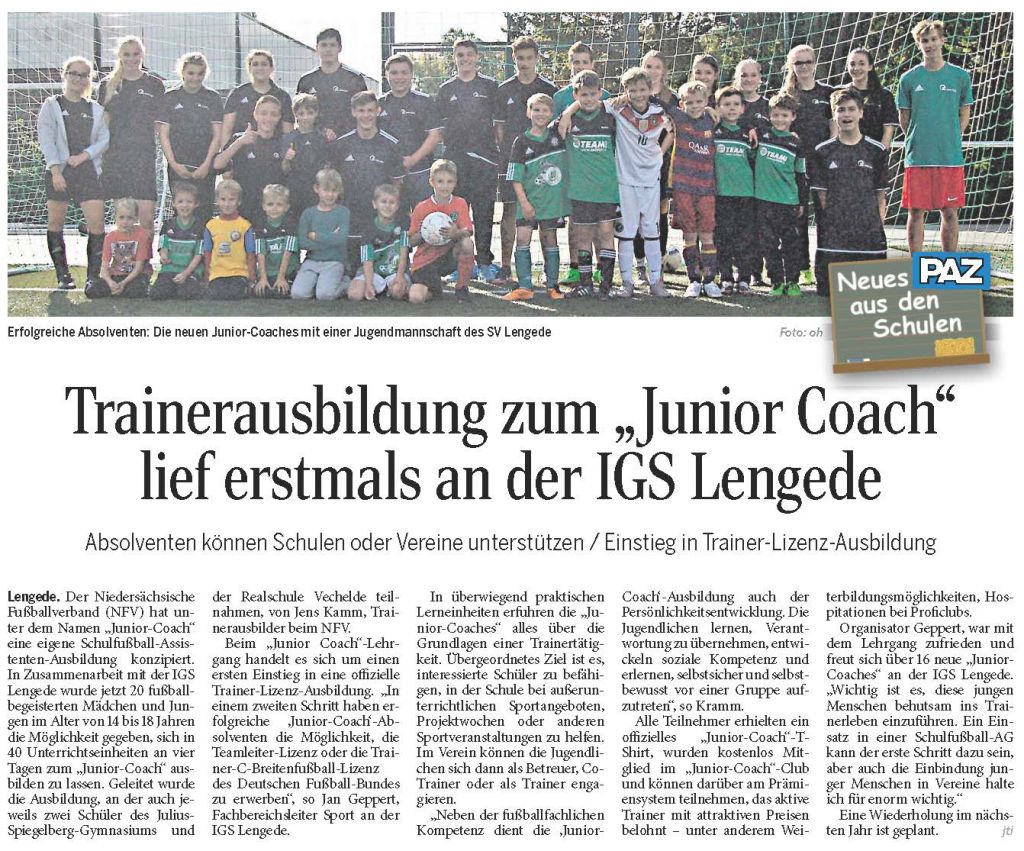 PAZ: "Trainerausbildung zum „Junior Coach“ lief erstmals an der IGS Lengede"