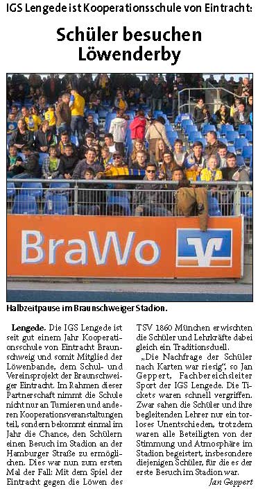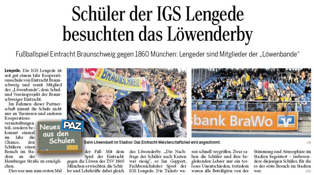 PAZ: "Schüler der IGS Lengede besuchten das Löwenderby"
